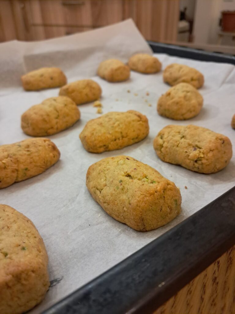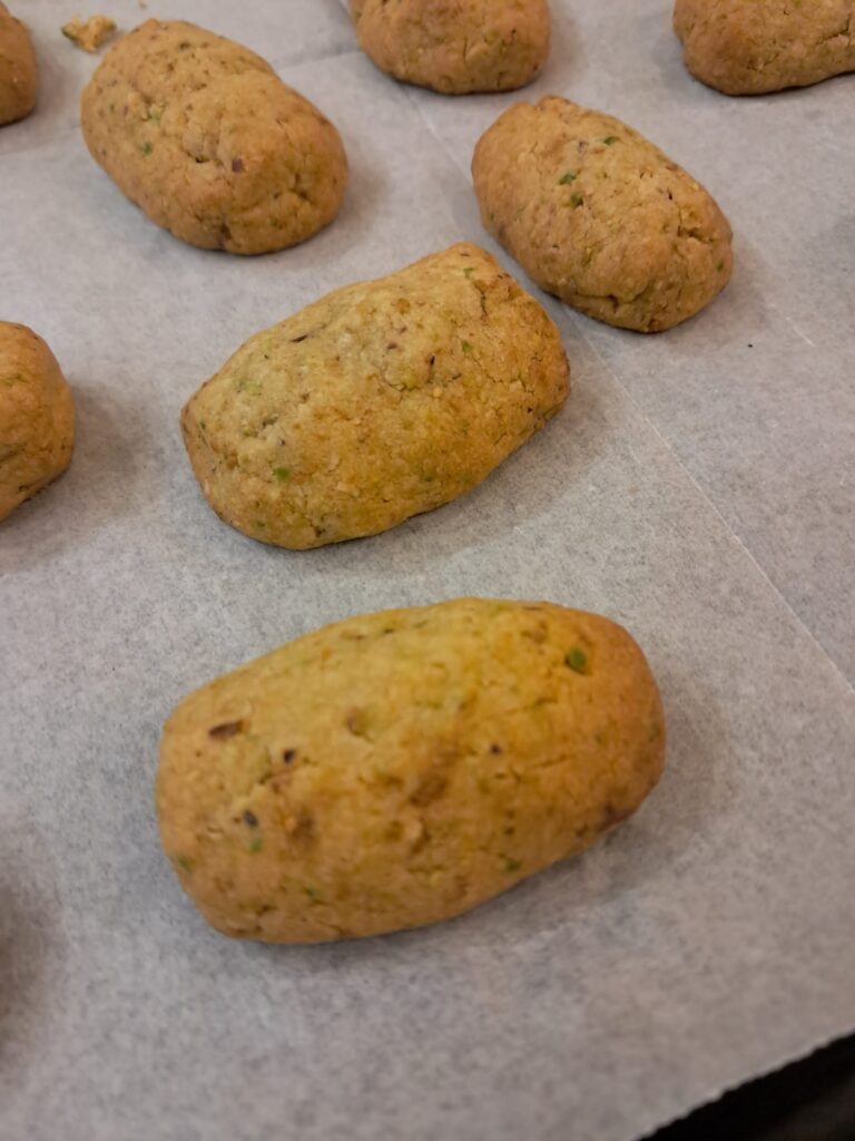 השילוב של הפיסטוק ,קוקוס ומיי זהר בבצק עם מלית התמרים יוצר עוגיות טעימות, עם טעם דומיננטי ומיוחד.