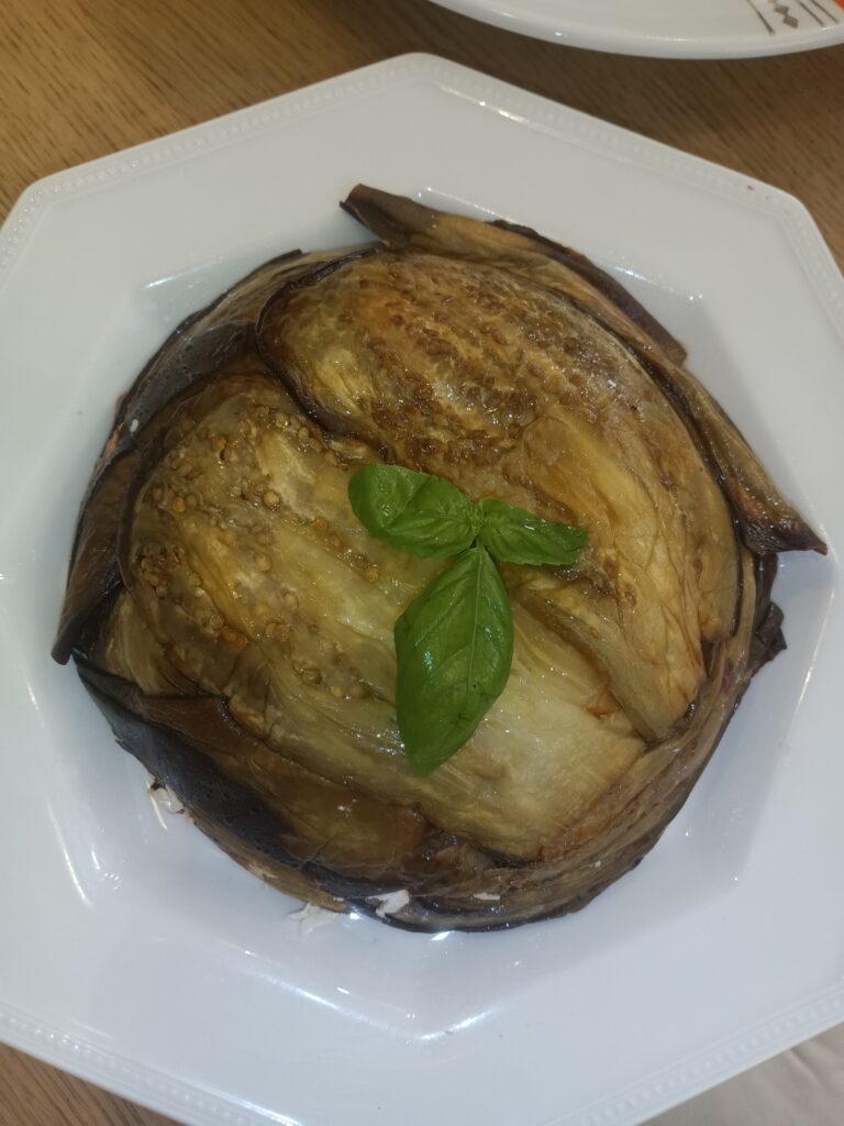 "עוגת" חצילים, פלפלים וגבינה